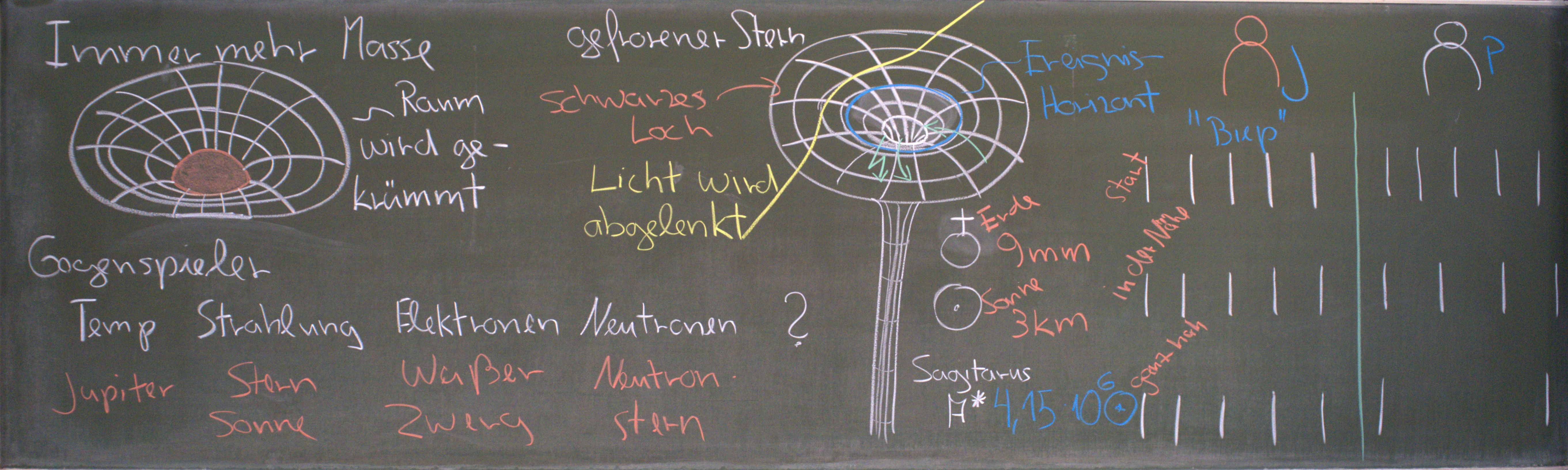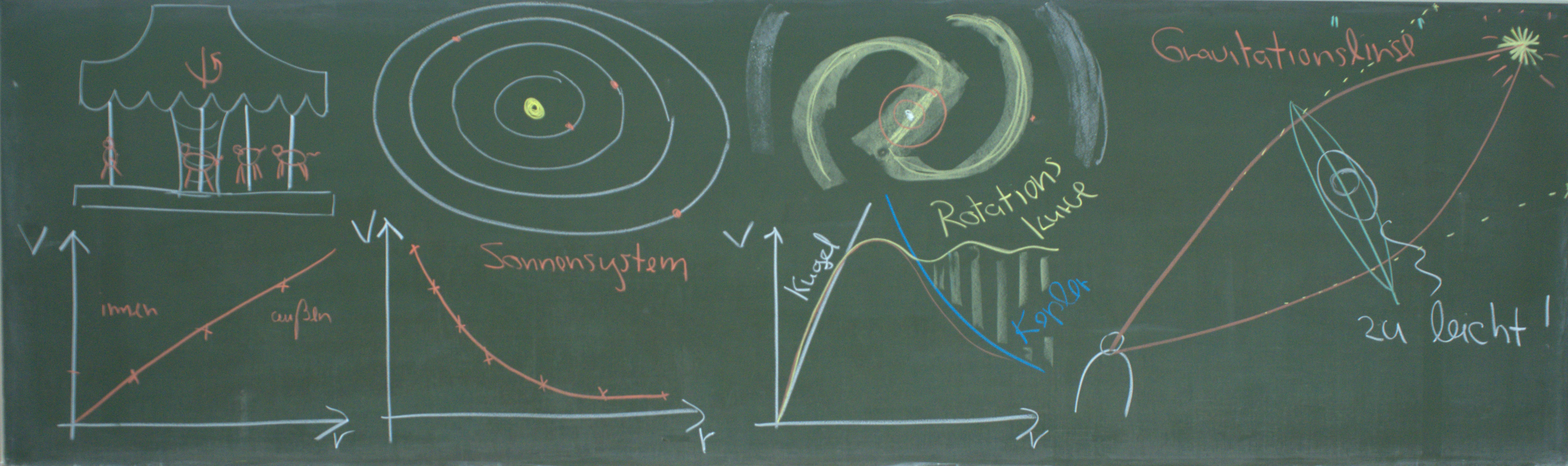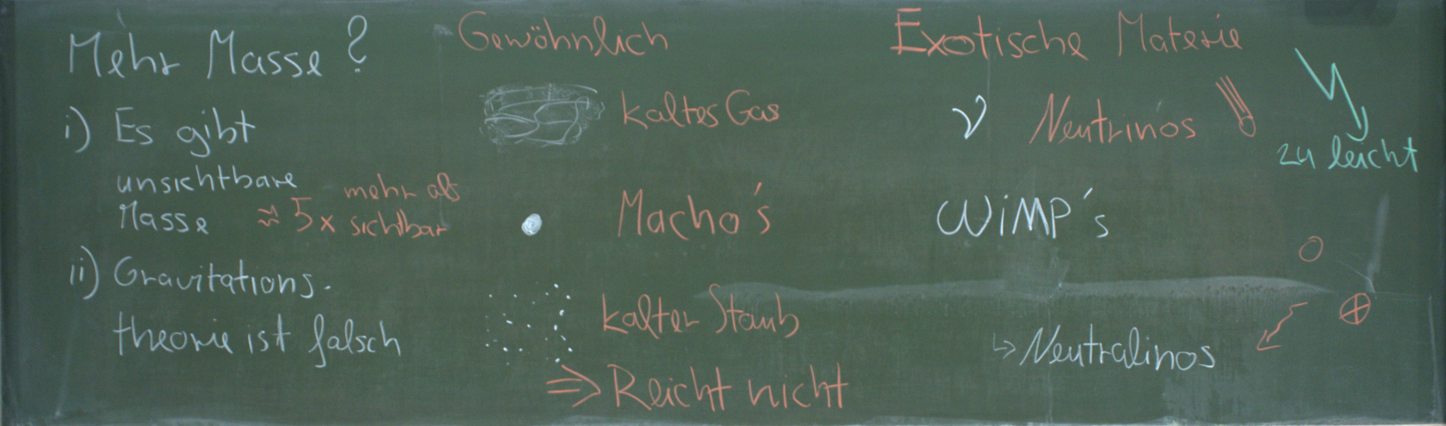 Auf dieser Seite finden Sie die Tafelbilder der Veranstaltungen zu den Themen Relativtät, Kosmologie und Dunkele Materie